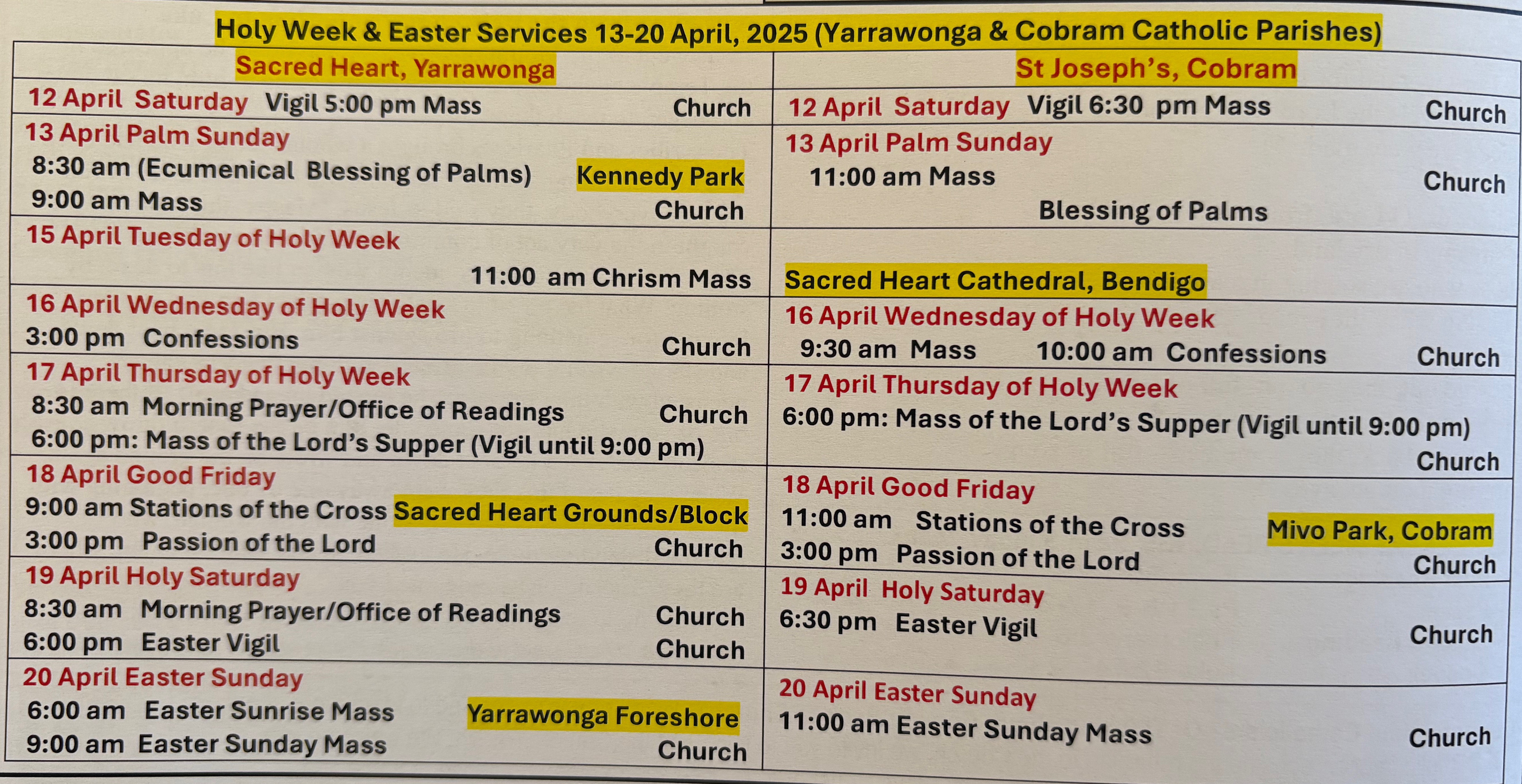 Easter 2025 Mass Times Yarrawonga & Cobram Catholic Church
